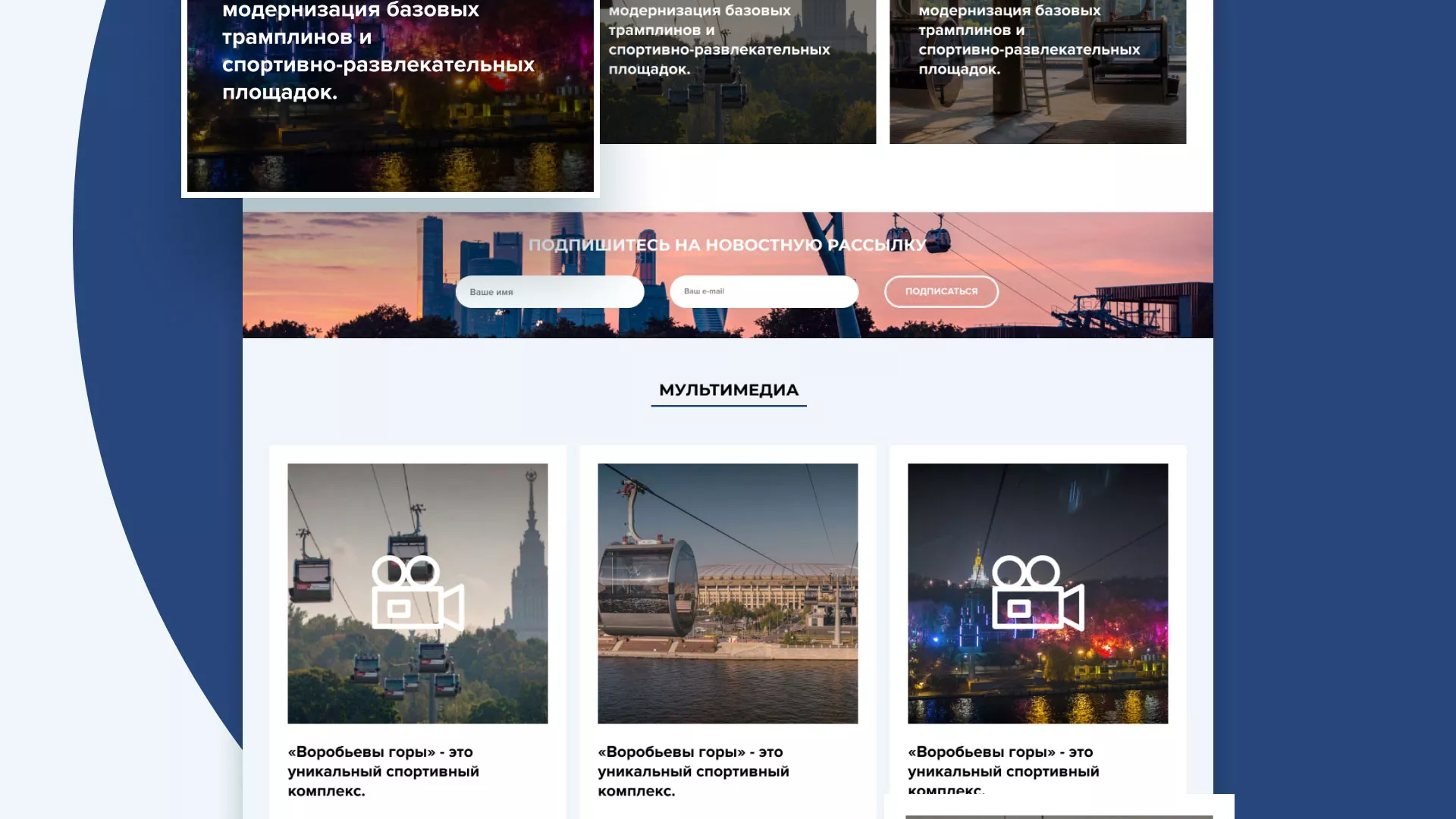 Разработка сайта в Зеленодольске для спортивно-развлекательного комплекса «Воробьёвы горы»